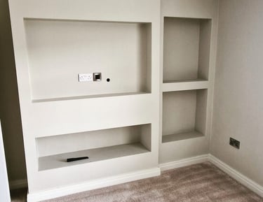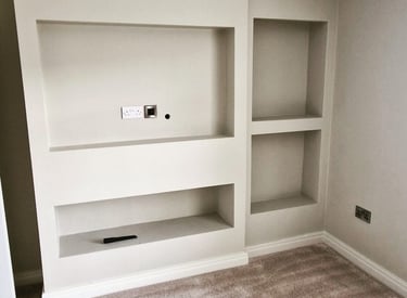 We also create and plaster media walls, perfect for modern living spaces. Prices typically range from £1000 to £4000 depending on size and design.